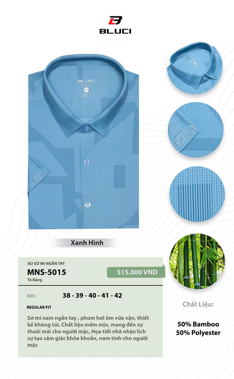 - Áo sơ mi MNS-5015 là một lựa chọn tuyệt vời cho phái mạnh yêu thích sự thoải mái, trẻ trung và phong cách. Với chất liệu Bamboo pha Polyester cao cấp cùng màu xanh tươi sáng và cấu trúc vải đặc biệt, chiếc áo này phù hợp cho nhiều dịp, từ môi trường công sở đến đi chơi, dạo phố, mang lại vẻ ngoài năng động và lịch sự.