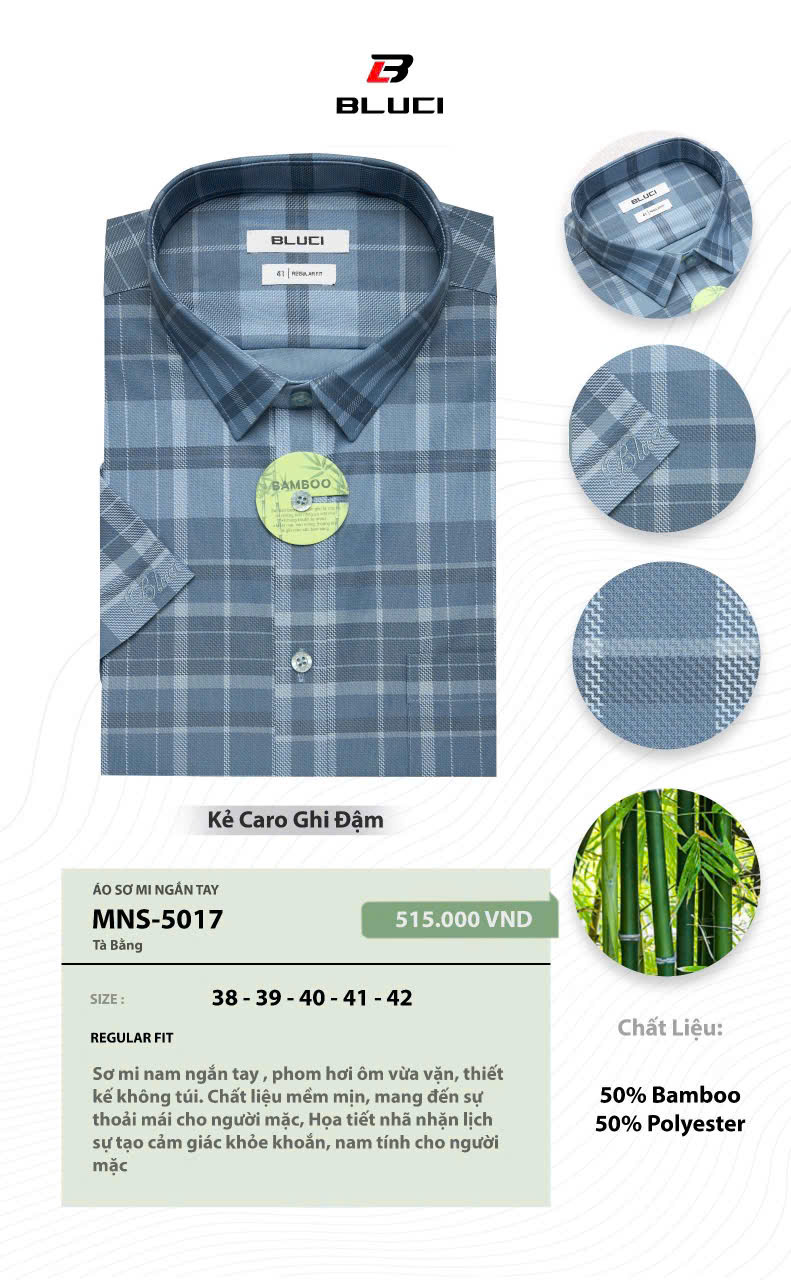 - Áo sơ mi MNS-5017 là một lựa chọn tuyệt vời cho phái mạnh yêu thích sự thoải mái, phong cách và cá tính. Với chất liệu Bamboo pha Polyester cao cấp cùng họa tiết kẻ caro ghi đậm thời trang, chiếc áo này phù hợp cho nhiều dịp, từ môi trường công sở đến đi chơi, dạo phố, mang lại vẻ ngoài năng động và cuốn hút.