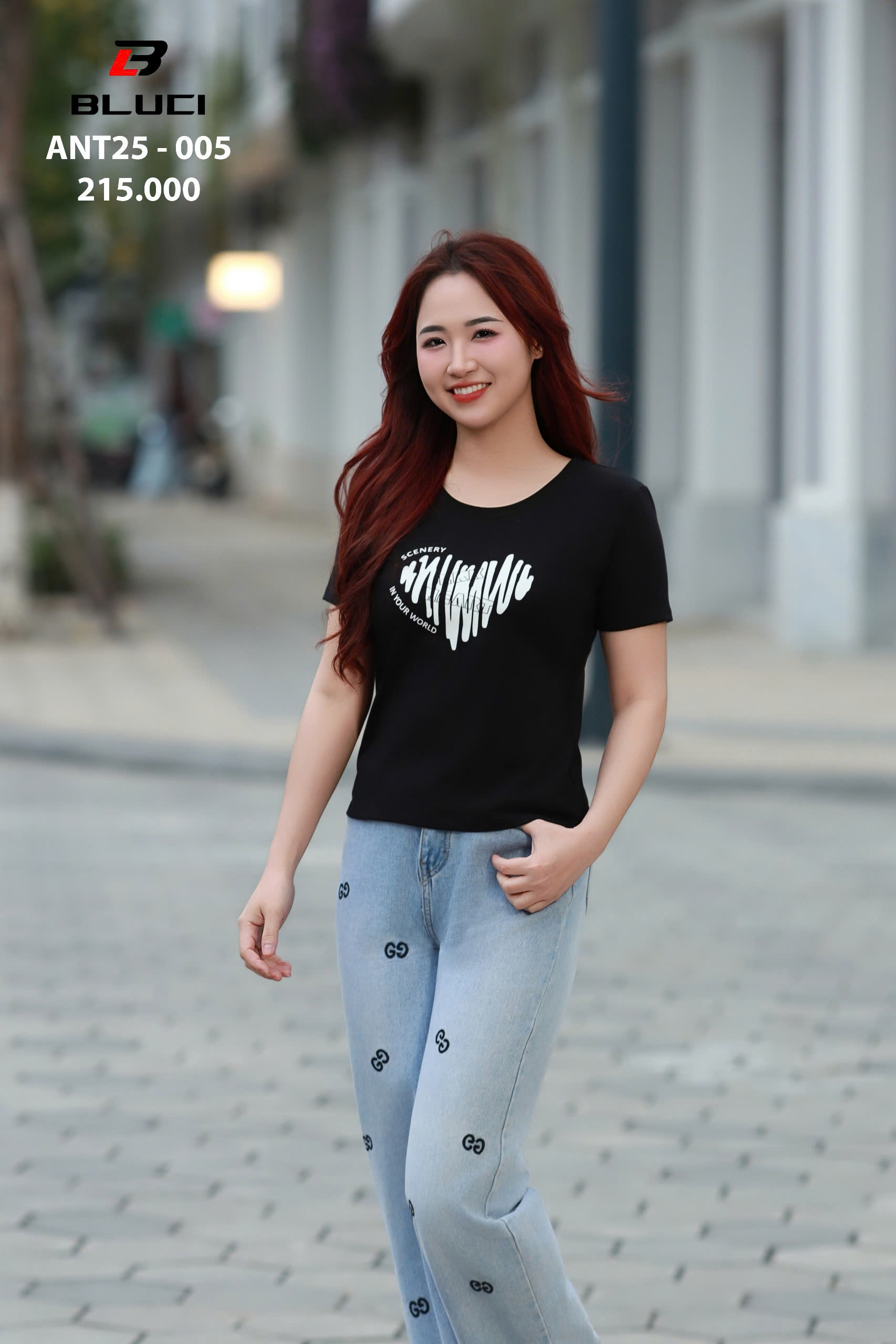 - Thiết kế: Thiết kế cổ tròn và điểm nhấn hình in đơn giản, hiện đại, tạo nên phong cách trẻ trung, năng động.