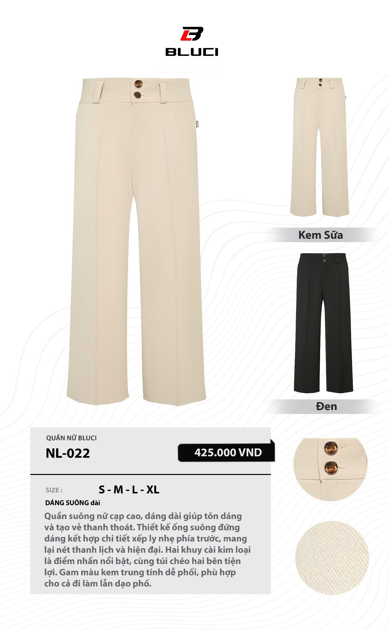 - Quần âu nữ BLUCI mang đến cho nàng sự thoải mái – tôn dáng hiệu quả mà vẫn cô cùng lịch sự. Chiếc quần mang phong cách thanh lịch, hiện đại và tính ứng dụng cao, phù hợp với nhiều hoàn cảnh khác nhau.